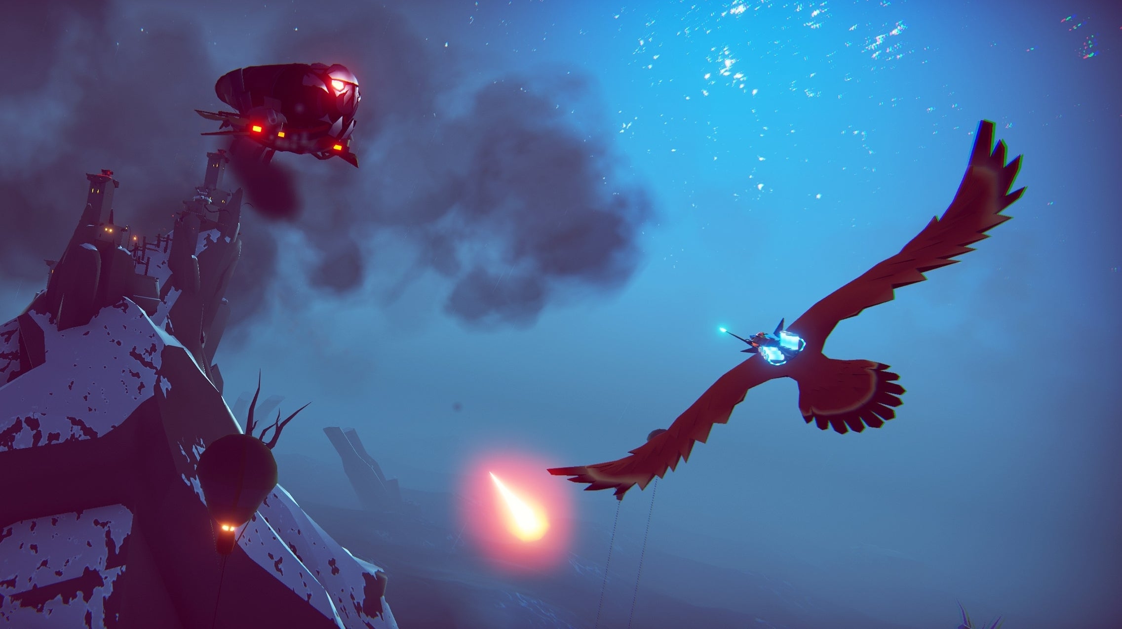 In the Falconeer you ride around on a bird. Fine. But to type that is not to understand it. And to understand it you need at least an hour of the game behind you. In the Falconeer you are not the bird, but you are in control of it. The game makes all of this luminously clear by the way the pad inputs translate into what happens on the screen and the way the bird’s abilities interlock with the world.